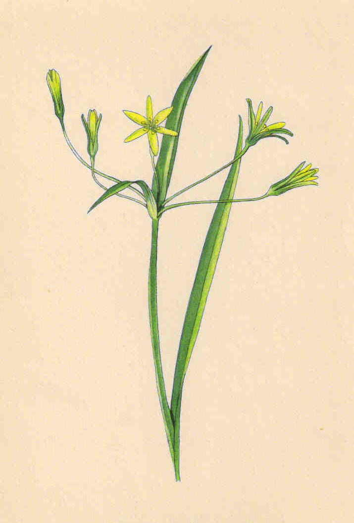 Je to vytrvalá, 10 - 30 cm vysoká rostlina s jednou cibulkou. Lodyha je přímá, pevná. Přízemní list je široce čárkovitý, 3 - 9 mm široký, na konci zahroceý, kápovitý. Lodyžní listy jsou 2, kopinaté, kýlovité, pavučinatě brvité. Květy vyrůstají z paždí podpůrných listenů (podobných listům) a vytvářejí řídký 1 - 10květý koncový okolík. Okvětní lístky jsou podlouhlé, tupě zaokrouhlené, 10 - 16 mm dlouhé, vně zelenavé, uvnitř žluté. Tyčinky dorůstají do poloviny okvětních lístků, prašníky jsou vejčité; semeník je obvejčitý. Plod je trojhranná blanitá tobolka. Kvete od března do května.
