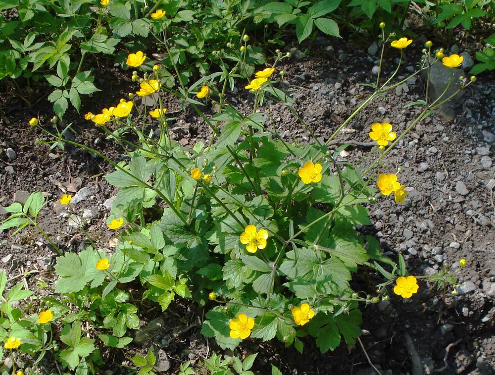 Je to vytrvalá, 30 až 70 cm vysoká bylina s krátkým oddenkem, z něhož na jaře vyrůstá bohatě větvená, měkce odstále chlupatá, dutá lodyha. Přízemní listy jsou dlouze řapíkaté, chlupaté, dlanitě 3-5dílné v úkrojky široce vejčité, s okraji mělce dlanitě rozeklanými a zubatě zastřihovanými. Lodyžní listy podobné přízemním, horní přisedlé s čepelí jednodušeji dělenou. Pětičetné, oboupohlavné, volnoplátečné, pravidelné, až 4 cm velké květy jsou sestaveny v řídká latovitá květenství. Žloutkově žluté, vejčité, lysé a lesklé korunní lístky jsou až 15 mm dlouhé a mají na bázi medovou jamku. Opadavé kališní lístky jsou chlupaté, odstálé od koruny a zelenavě zbarvené. Květy mají četné tyčinky a pestíky se svrchními semeníky. Na kulovitém, lysém lůžku dozrávají četné lysé, silně zploštělé vejčité nažky, vybíhající v delší, srpovitě zahnutý zobánek. Nažky mohou být roznášeny vodou i zvířaty. Kvete v červnu a červenci.