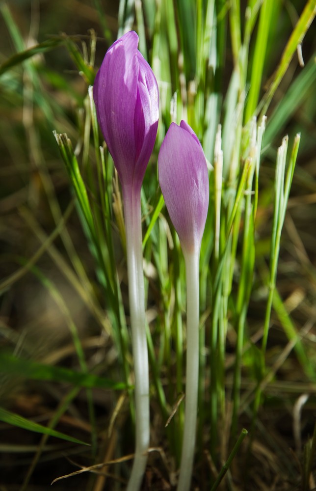 Je to vytrvalá rostlina s neobvyklým životním cyklem. Hluboko v zemi má až 7 cm dlouhou hruškovitou hlízu, z jedné strany vypouklou, z druhé strany plochou a žlábkovitou. Hlízu obaluje blanitá pochva - zbytek pochvy loňského listu. Na jaře se na spodku hlízy na ploché straně vytvoří obnovovací pupen, z něhož přes léto vyroste jen kratičký a stále v zemi ukrytý stonek. Je spojen s hlízou, která funguje jako zásobárna živin. Stonek má 2 až 3 blanité pochvy a několik šupinkovitých základů budoucích listů a základy pěti květů. Na podzim z těchto základů vyrostou až nad povrch země jeden až tři květy a ostatní zakrní.