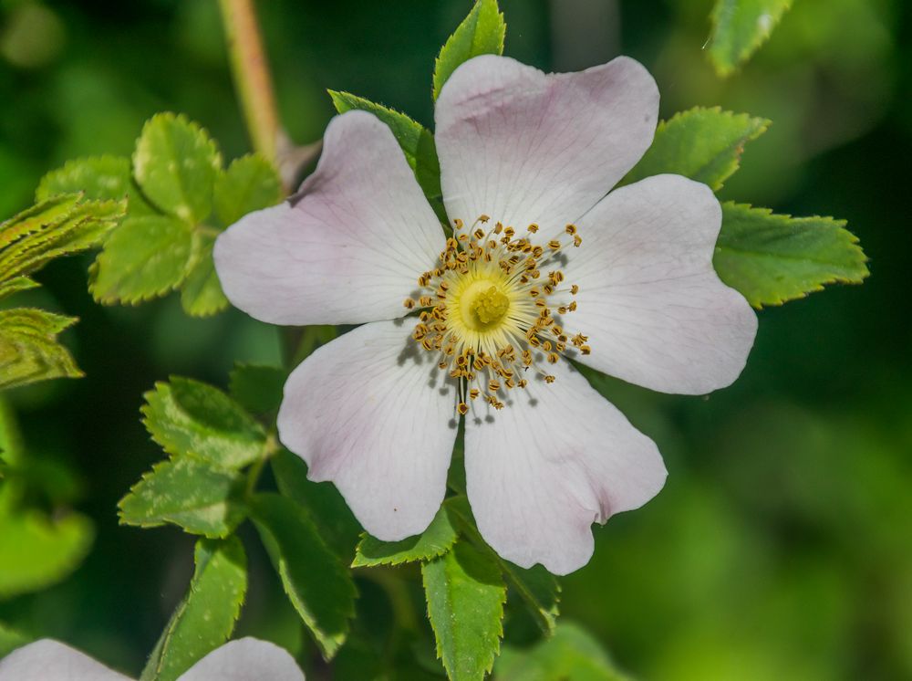 Je to bohatě větvený, až 3 m vysoký keř s prutovitými větvemi a s ostrými hákovitě zahnutými ostny. Střídavé lichozpeřené listy mají dvě až tři jařma a úzce zašpičatělé palisty téměř po celé délce srostlé řapíkem. Jednotlivé lístky jsou lysé, na okraji ostře pilovité, naspodu také s drobnými trny. Velké pětičetné květy vyrůstají jednotlivě nebo v chudých vrcholičnatých květenstvích na konci větví. Mají baňkovitou češuli, v níž je velký počet drobných pestíků. Na češuli je pět kališních cípů, z nichž alespoň některé jsou dělené. Pravidelná koruna má v průměru až 6 cm a je tvořena volnými, brzy opadavými dvoulaločnými plátky růžové až bílé barvy. Po oplození češule dužnatí a mění se v nepravý vejčitý plod zvaný šípek (ve skutečnosti souplodí nažek), na jehož vnitřních stěnách, pokrytých ostrými tvrdými chloupky, je velký počet drobných nažek.