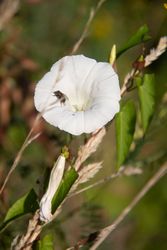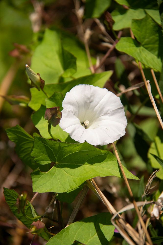 Je to vytrvalá popínavá bylina s dužnatým plazivým oddenkem, který proniká až do hloubky 2 m, a ovíjivou (pravotočivou), tupě hranatou, v horní části větvenou lodyhou. Listy jsou trojúhelníkovitě vejčité, na bázi srdčitě střelovité, s laločnatými oušky, řapíkaté. Jednotlivé květy vyrůstají z paždí listů na dlouhých hranatých stopkách. Pod kalichem jsou 2 vytrvalé kopinaté listeny. Korunní plátky srůstají do široké nálevky o průměru až 45 mm. Jsou svítivě bílé, jen zřídka narůžovělé. Kvete v červnu až září.