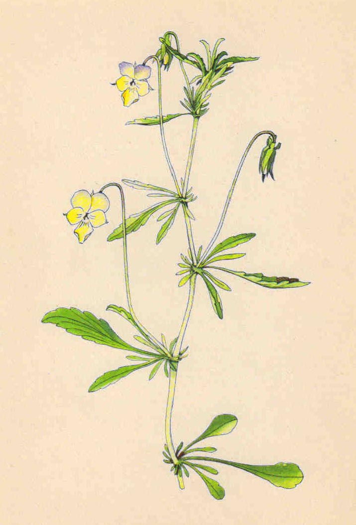 Je to jednoletá až dvouletá, 5 až 20 cm vysoká bylina, s tenkým bledým kořenem a s lodyhami většinou poléhavými až vystoupavými, řidčeji vzpřímenými, jsou lysé nebo spoře chlupaté, většinou silně větvené. Listy jsou střídavé, řapíkaté, na okrajích oddáleně zubaté, dolní jsou víceméně okrouhlé, horní vějčitě oválné. Palisty jsou hluboce peřenodílné, s posledním úkrojkem vejčitým až kopinatým, vroubkovaným. Květy vyrůstají z paždí listů na velmi dlouhých stopkách, jsou oboupohlavné, pětičetné, souměrné, 10 - 15 mm dlouhé. Kališní lístky jsou kopinaté, špičaté, s okrouhlým přívěskem, korunní plátky bledě žluté, ostruha a někdy i horní plátky bývají nafialovělé. Kvete od dubna do října.