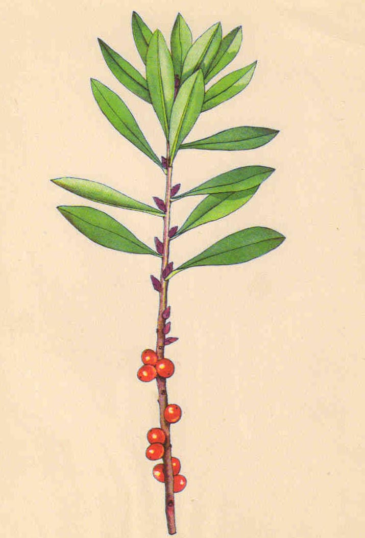 Je to menší keř, 30 - 150 cm vysoký, s větvemi většinou dosti řídkými, pevnými a houževnatými, jež jsou v mládí plstnaté a později olysávají. Listy jsou střídavé, na konci větví nahloučené, podlouhlé až tupě špičaté, s krátkými řapíky, lysé, naspodu bledší. Drobné růžové nebo růžově fialové (zřídka bílé) kvítky, jež tvarem i zbarvením trochu připomínají květy šeříku, jsou nahloučeny v chudých postranních svazečcích na hořejších částech větví. Krásně voní, jsou přisedlé a 5 - 10 mm dlouhé. Jejich okvětí (korunovitě zbarvený kalich, neboť vlastní koruna není vyvinuta) je tvořeno dlouhou trubkou, která na konci nese 4 ploše rozložené cípy. Osm tyčinek přirůstá krátkými nitkami k trubce okvětí ve dvou kruzích, a to tak, že 4 jsou blíže ústí a 4 o něco níže. Svrchní semeník, tvořený jedním plodolistem, se za plodu mění ve šťavnatou, ohnivě červenou peckovici. Kvete v únoru až březnu, je-li mírná zima často i v prosinci nebo v lednu, je-li zima tuhá, až v dubnu. Celá rostlina je prudce jedovatá.