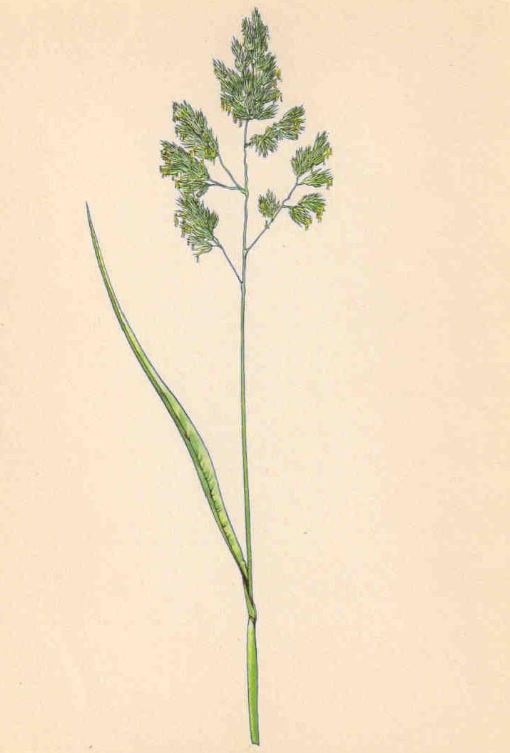 Je to vytrvalá, 100 - 150 cm vysoká , statná tráva, hustě trsnatá, živě až šedě zelená, s krátce výběžkatým oddenkem. Stébla jsou přímá, kolénkatá, pochvy listů jsou uzavřené, zploštělé až dvouřízné, drsné, nejspodnější hnědé, kožovité a dlouze vytrvávající. Čepel je 3-15 mm široká, plochá, na žilkách a okrajích drsná, převislá, se 4-10 mm dlouhým špičatým jazýčkem. Květenství je klasovitá lata až 20 cm dlouhá, nejprve úzká a později rozvolněná a jednostranná, s tenkými, odstálými a silně drsnými větévkami. Klásky jsou 2-3květé, zploštělé, nejvyšší květ je redukovaný. Plevy jsou kopinaté, hrotité až osinkaté, pluchy vejčítě kopinaté, kýlnaté; pluška kratší než pluchy. Plodem je okoralá obilka. Kvete od května do srpna.