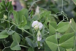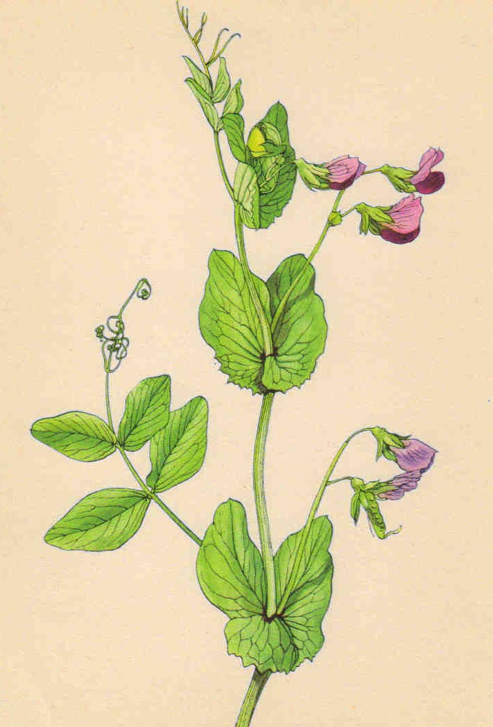 Je to jednoletá bylina, zcela lysá a sivě nebo žlutavě zelená. Lodyhu má jen na spodu chudě rozvětvenou, chabou, poléhavou nebo šplhavou, hranatou a 50 až 200cm dlouhou. Listy jsou sudozpeřené, s vřetenem přecházejícím na konci v úponku rozdělenou ve 3 až 5 větví, s 1 až 3 páry vejčitých, dolů klínovitě zúžených, 2 až 6 cm dlouhých a 1,5 až 3,5 cm širokých, zaobalených a celokrajných lístků.. Palisty jsou většinou větší než listy, široce polosrdčité, na spodním okraji oddáleně zoubkaté nebo celokrajné. Květenství, které vyrůstá v paždí listů, je jen 1 – 2květé, většinou kratší než palisty. Květy mají 5 až 10 mm dlouhou stopku a jsou 20 až 25 mm dlouhé, vonné, složené z pěticípého zvonkovitého kalicha s nestejnými zuby a z motýlovité koruny, jež je bílá, řidčeji narůžovělá a skládá se z pavézy, křídel a člunku. Pestík se mění v 5 až 10 cm dlouhý a 12 až 20 mm tlustý lusk, zprvu dosti plochý, v dospělosti skoro oble válcovitý, na obou koncích krátce přišpičatělý a obsahující 4 až 10 semen. Ta jsou kulovitá nebo trochu hranatá, bledě zelená až bledě žlutozelená. Kvete v květnu a červnu.