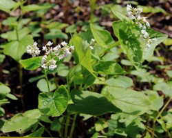 Květenství vyrůstají z úžlabí listů a květy jsou uspořádány do hroznu. Květy pohanky obecné jsou oboupohlavné, mají bílou, růžovou nebo červenou barvu. Plodem je trojboká nažka s hnědočernou nebo šedou barvou. Semena po oloupání (kroupy) se složením a tvarem podobají cereáliím. Vnější obal je zastoupen tlustou jednobuněčnou vrstvou světle zelené barvy. Uvnitř se nachází endosperm se zdrojem škrobu.