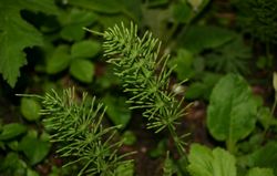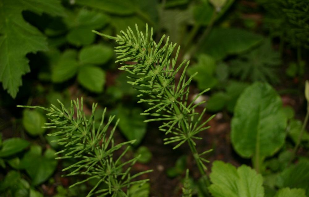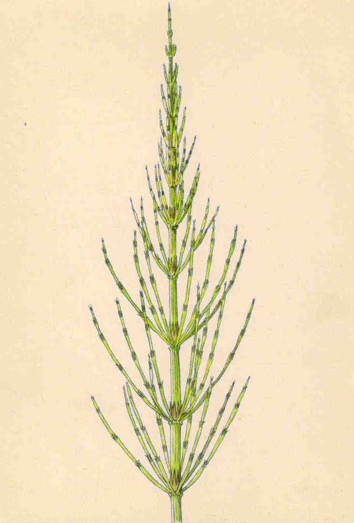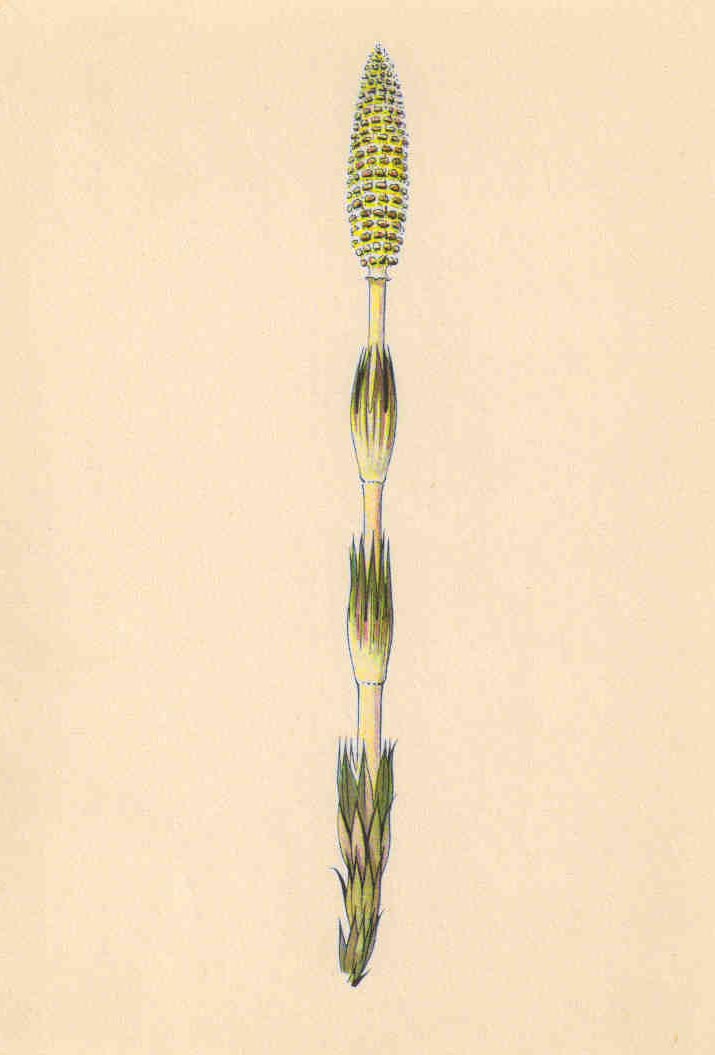 Jedná se o nahosemennou výtrusnou vytrvalou bylinu přirozeně se vyskytující v podnebí arktického a mírného pásu severní hemisféry. Má typický sezónní dimorfismus, vyrůstají jí 2 lodyhy, jedna sterilní, nereproduktivní a druhá fertilní nosící výtrusy, vyrůstající z podzemního oddenku. Lodyha může dorůstat až 90 cm výšky, 3-5 mm v průměru nejširšího místa a kolénkové segmenty jsou 2-5 cm dlouhé. Z každého segmentu vyrůstá boční větvička se spirálovitým prstencem, která může mít v průměru 1 mm. Fertilní lodyha je šťavnatá, bělavá, mělce rýhovaná, 10-30 cm vysoká, průměr má zhruba stejný jako jarní lodyha, každé uzliny na lodyze se nachází pochva, což jsou 4-8 hnědé spirálovité listy, které se přeslenitě větví, na konci mají volné konce a zubaté okraje a na vrchu je lodyha zakončena hnědou spórovitou 10-40 mm dlouhou a 4-10 mm širokou šišticí (strobilus).