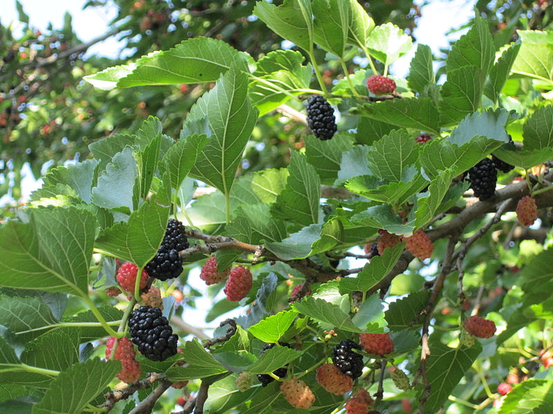 Morušovník černý je opadavý strom dorůstající běžně výšky 10 m. Kůra je ojíněná a světle zelená v mládí, později světle hnědošedá, popraskaná. Listy jsou dlanité se zubatými okraji, ze spodu plstnaté. Ochlupený řapík je odlišovacím znakem od jiných variant morušovníku. Kvete od května do června. Plody průběžně dozrávají a opadávají. Jsou malé tmavě fialové až černé peckovičky v 2 — 4 cm dlouhých souplodích, se sladkou chutí a jemnou vůní.