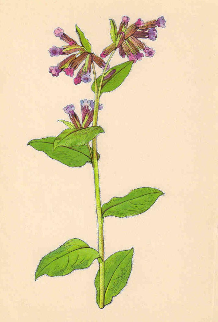 Je to vytrvalá bylina s poměrně tenkým, rozvětveným oddenkem a lodyhami 10 - 30 cm vysokými, chlupatými, přímými a jen nahoře rozvětvenými většinou ve 3 vijany. Pět až sedm lodyžních listů je úzce vejčitých až kopinatých, skoro přisedlých, 4 - 6 cm dlouhých, 1 - 2 cm širokých. Přízemní listy v růžici se vyvíjejí zároveň s květními lodyhami a jsou 4 - 12 cm dlouhé a mají dosti dlouhé řapíky, na líci opatřené hlubokým žlábkem a kratší nebo stejně dlouhé jako čepele, jež jsou vejčité, na konci špičaté, naspodu skoro srdčité nebo uťaté, 2 - 5 cm široké, na líci tmavší s bělavými okrouhlými skvrnami, na rubu světlejší, s žilnatinou zpeřenou, dosti měkce chlupaté. Květy skládají vijany. Jednotlivé kvítky mají kalich 6 - 8 mm dlouhý, za plodu prodloužený až na 12 mm, do třetiny až poloviny rozdělený v pět cípů. Nálevkovitá koruna je nejprve růžová, později fialová, 13 - 18 mm dlouhá, v ústí s chomáčky chlupů, rozdělená v pět zaokrouhlených cípů. Pět tyčinek je kratčích než trubka koruny. Jejich nitky jsou krátké. Semeník nese čnělku s hlavatou bliznou a mění se za plodu ve 4 tvrdky, jež jsou 3,5 - 4 mm dlouhé, leskle hnědé až černé. Kvete od března do května.