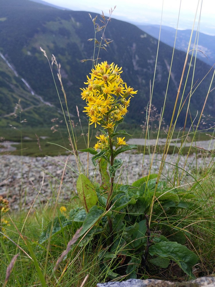 Přímé lodyhy, většinou lysé, ojediněle nahoře chlupaté. Střídavé listy, dolní jsou vejčité, někdy až do elipsy. Na středu jsou listy zúžené tak, že tvoří křídlatý řapík. Nejvyšší jsou přisedlé a jemně pilovaté. Úbory rostou v hroznovité květenství, jsou 7–18 mm dlouhé a 10–15 mm široké. V období července, srpna, září a října kvete 8-12 žlutých květů.