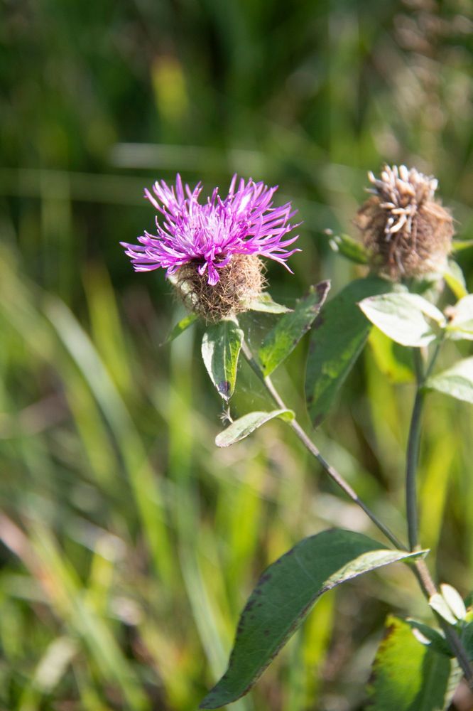Vykvétá od července do září. Opylována je včelami, motýly a dalším hmyzem, neopylené květy se mohou opylit i autogamicky. Plodem je obvejčitá a mírně zploštělá, světlá, velice lehká nažka bez chmýří, pouze někdy s úzkým límečkovitým lemem. Po uzrání se zákrov, který dosud nažky chránil, rozloží a vítr semena rozfouká.