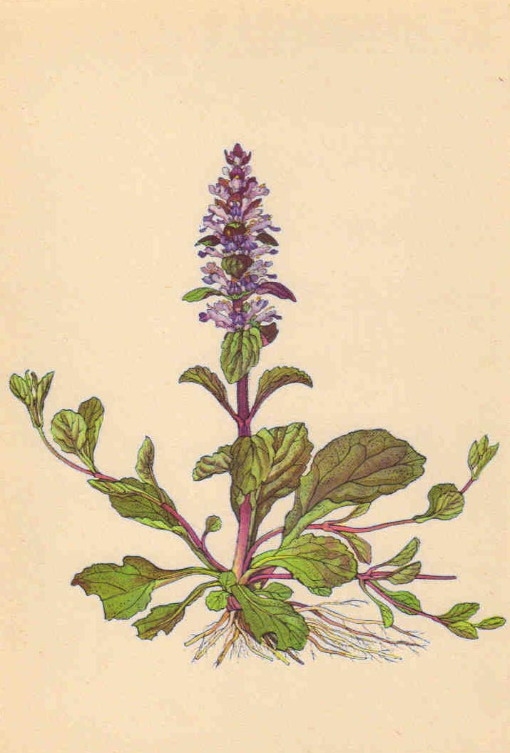 Je to vytrvalá, až 30 cm vysoká bylina s nadzemními plazivými výhony, které jsou značně dlouhé a na uzlech kořenující. Lodyha je nevětvená, přímá nebo vystoupavá, 4hranná, červenofialově naběhlá, v horní polovině na dvou protilehlých plochách chlupatá. Listy přízemní růžice jsou dlouze řapíkaté, úzce obvejčité, téměř celokrajné, lodyžní listy nejčastěji 2 páry, krátce řapíkaté až přisedlé, obvejčité, vroubkované až celokrajné, tmavozelené, často s červenofialovým nádechem, na obou stranách nebo jen vespod drsně chlupaté a přecházejí v listeny, v jejichž paždí vyrůstají stejně dlouhé nebo na horní části o něco delší květy, skládající 6-10květé lichopřesleny, dole oddálené, v horní části nahloučené. Lichopřesleny tvoří vrcholový lichoklas. Květy jsou krátce stopkaté, 1 až 1,5 cm dlouhé se zvonkovitým, víceméně drsně chlupatým kalichem. Koruna je modrá až modrofialová, zřídka bílá nebo růžová, pýřitá, pyskatá, s dlouhou trubkou, horní pysk je zakrnělý, dolní 3laločný, tyčinky vyčnívají z koruny. Plody jsou 4 tvrdky. Kvete od dubna do srpna.