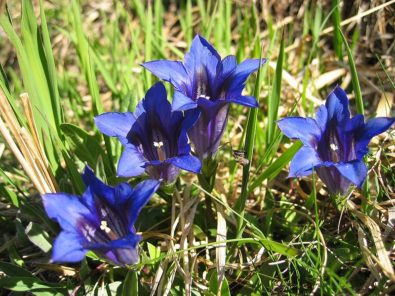 Je to vytrvalá, jen 5 - 10 cm vysoká bylina, s krátkým nevětveným oddenkem. Lodyha vyrůstá ze středu listové růžice, je velmi krátká (1 cm), po odkvětu se prodlužuje. Přízemní listy jsou kopinaté, špičaté, kožovité, na okrajích drsné, za sucha jemně svraskalé, světle zelené; lodyžní listy jsou menší, vstřícné, v 1 - 2 párech, vejčitě kopinaté. Lodyha je ukončena jedním velkým přímým květem, až 5 - 6 cm velkým. Kalich je zvonkovitý, 6klaný, kališní ušty jsou tak dlouhé jako trubka, špičaté, na okrajích drsné. Koruna je nálevkovitě zvonkovitá, azurově modrá, v ústí trubky bledší, bez zelených skvrn. Plod je tobolka. Kvete od dubna do července.