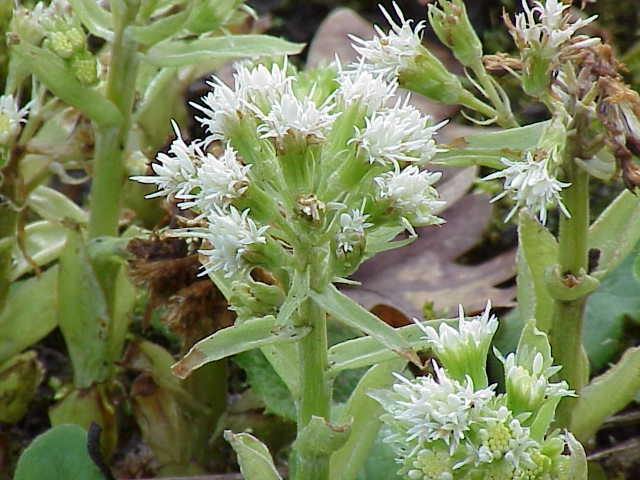 Je to vytrvalá, 30 - 80 cm vysoká rostlina, s poměrně silným plazivým oddenkem. Přímá nebo vystoupavá lodyha je pokrytá bledě zelenými blanitými šupinami (stvol), podlouhle kopinatými. Dolní listeny jsou širší, pochvaté. Listy tvoří přízemní růžici a objevují se později než květy, jsou běloplstnaté, později olysalé a jen na žilnatině chlupaté; plst zůstává trvale jen na rubu listů. Tvar listů je okrouhlý, srdčitě vykrojené laloky bazální části listů se vzájemně nedotýkají. Listová čepel je na okraji dvojitě zubatá. Květenství je tvořeno z úborů, tvořících hrozen. Jsou dvoudomé, polygamní. Hlávky samčích květů jsou polokulovité, samičí jsou vejčité. Koruny jsou žlutavě bílé. Kvete od začátku března do poloviny dubna.