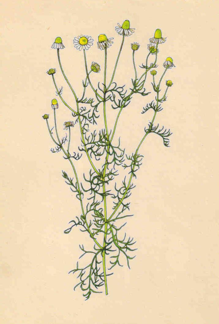 Je to jednoletá silně vonná bylina se slabým vřetenovitým kořenem, 10 až 50 cm vysokou bohatě větvenou lodyhou a střídavými přisedlými listy, jejichž čepel je dvakrát až třikrát zpeřeně dělená na úzké čárkovité úkrojky. Jednotlivé, dlouze stopkaté úbory se zeleným zákrovem mají obvodové bílé samičí květy s jazykovitou korunou v době plného rozkvětu šikmo skloněné na stopce; středové trubkovité květy jsou žluté a obojaké. Květní lůžko je bezplevkaté, nejprve polokulovité, později kuželovité a uvnitř duté. Plody jsou velmi drobné nažky bez chmýru. Kvete od května do září.
