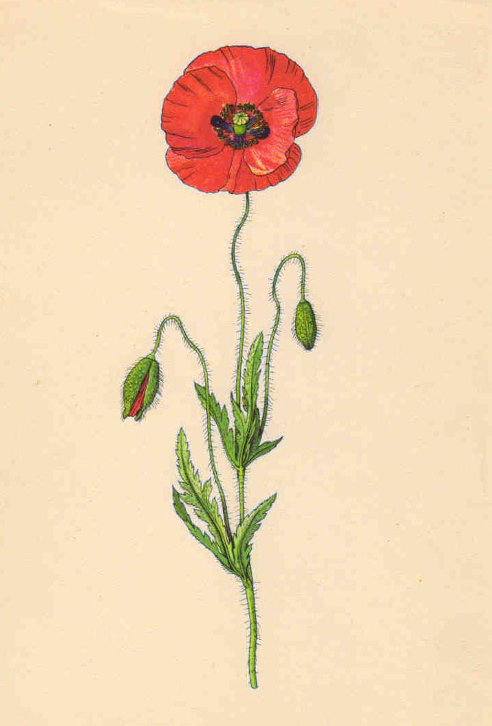 Je to jednoletá, 20 – 80 cm vysoká bylina s jednoduchou nebo jen slabě větvenou lodyhou, která je i v horní části odstále štětinatá a nese přisedlé a také štětinaté peřenoklané listy. Jednotlivé květy na koncích stonků jsou před rozvinutím sehnuté a korunní plátky jsou kryty dvěma štětinatými kališními lístky, které po rozkvětu opadávají. Čtyři velké sytě červené korunní plátky jsou široké, navzájem se překrývají a na bázi mají často červenou skvrnu. Tyčinky jsou černofialové a na rozdíl od většiny příbuzných druhů jsou nitkovité a pod prašníky neztlustlé. Charakteristický je i tvar plodu – tobolka (makovice), která je lysá a široce vejčitá. Kvete od druhé poloviny května do konce července.